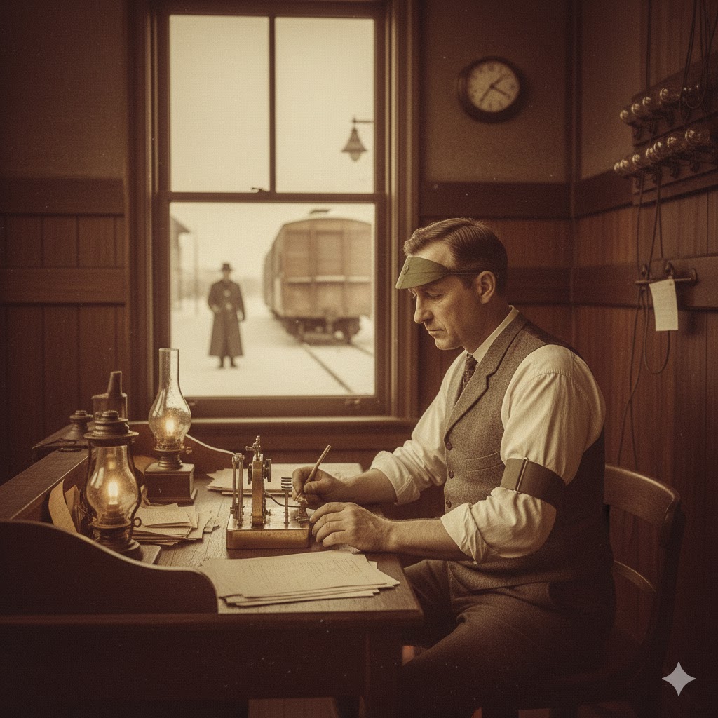 Abbie didn’t hear clicks or individual letters—she heard words. Every second saved by her “hearing” was invaluable. She looked out the station window and realized she had only heartbeats to act. Through the swirling snow, she saw the freight train’s headlight already cutting through the station yard. No use and no time to put up the station’s stop signal.